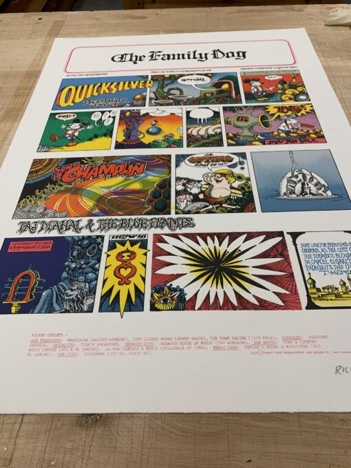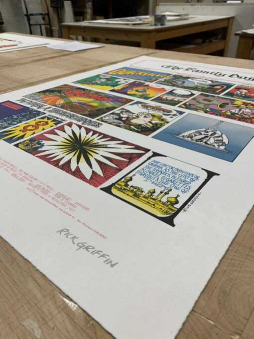 A play on the Sunday newspaper color comic strip, Mornin’ Papa serves up a dose of surrealist Mickey and Griffin’s own creation “Murph The Surf” all under the Family Dog masthead.