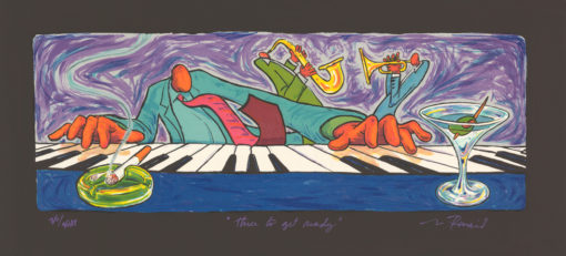 The image was originally created by Matt Rinard as an original gouache on watercolor paper. Mr. Rinard who, referring to the maquette, drew by hand the 13 separate plates from which this edition was pulled. “Three To Get Ready” was printed at S2 Editions, Ltd. Atelier in 2001 on an antique French Marinoni Voirin flat bed press. Includes certificate of authenticity.