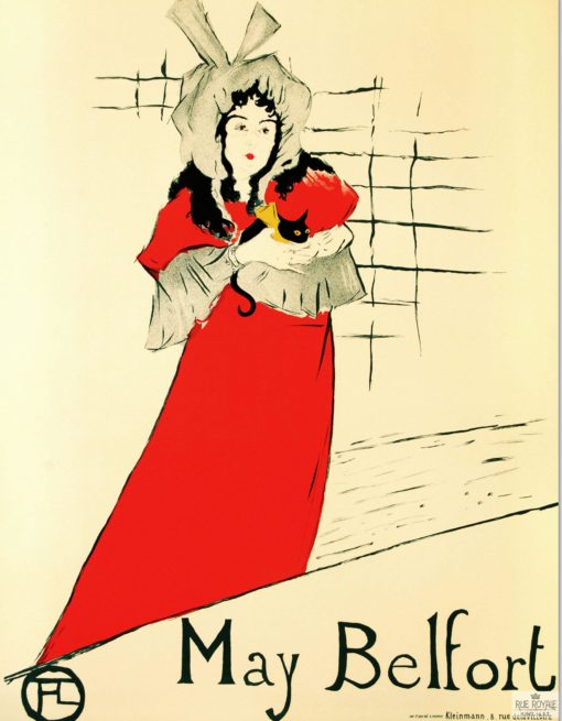 May Belfort and her black cat were the subject of Henri de Toulouse-Lautrec‘s promotional poster in 1895.  Belfort was a popular English performer in Parisian Nightclubs.  Printed on Rives paper in 2002. Includes certificate of authenticity.