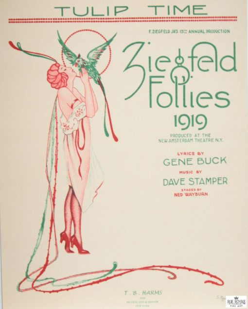 Hand-pulled lithograph of a vintage song sheet. Includes certificate of authenticity.